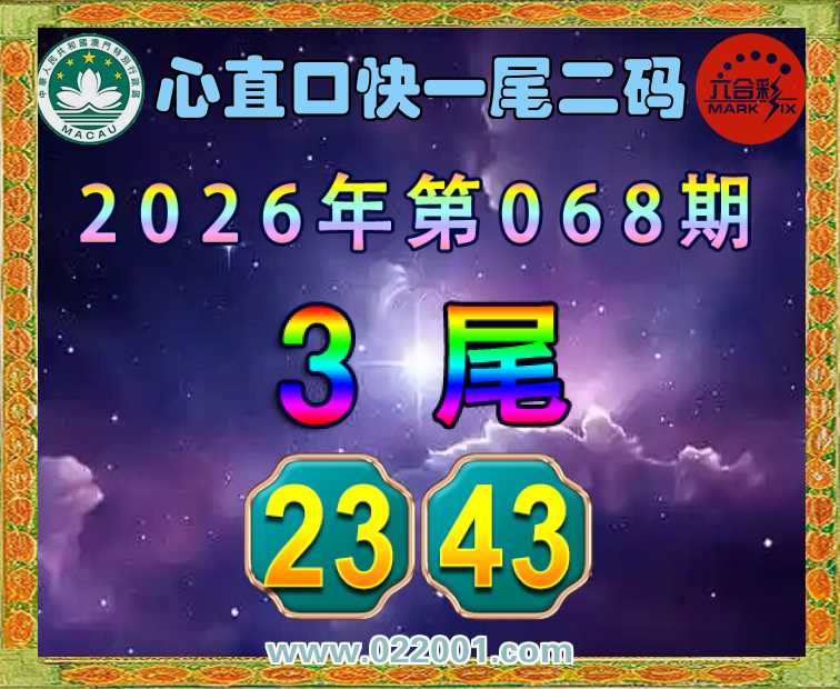 068期: 🍙『心直口快』 🍙一尾二码🍙【3尾主:23.43】开:23