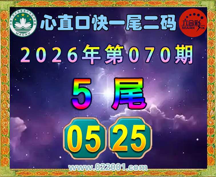 070期: 🍙『心直口快』 🍙一尾二码🍙【5尾主:05.25】开:25