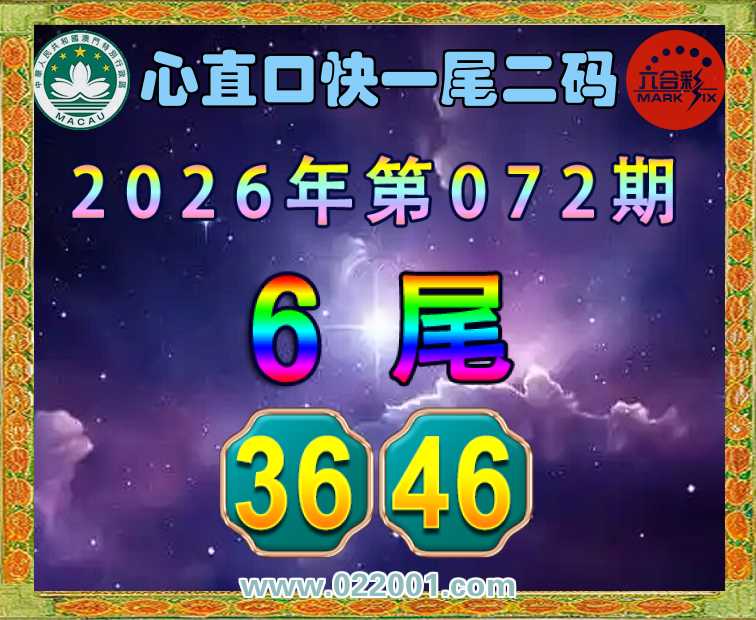 072期: 🍙『心直口快』 🍙一尾二码🍙【6尾主:36.46】开:46